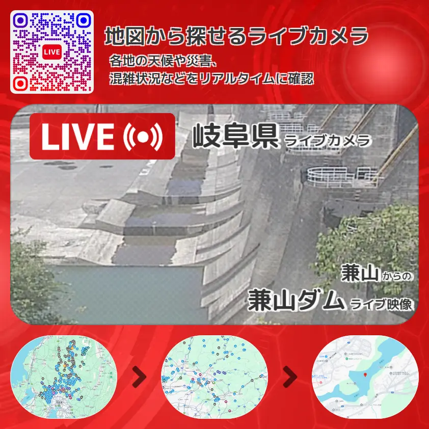 周辺の気象状況も併せてチェックすることが可能で、台風・大雨・地震などの災害による被害状況も把握することができます。
