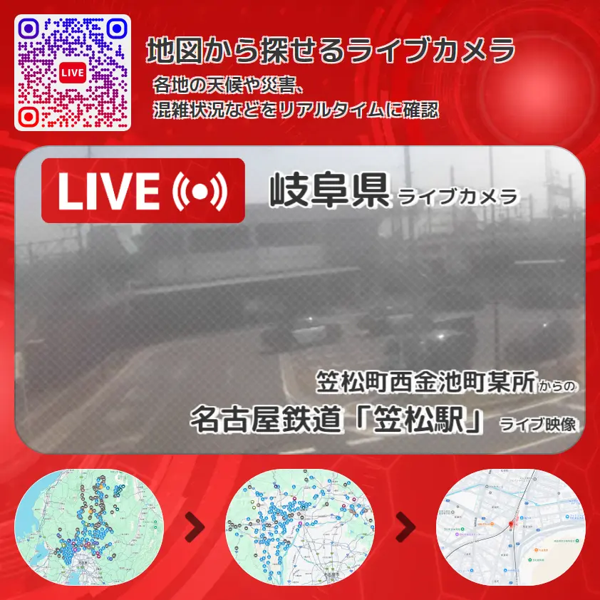 笠松町西金池町某所から、名古屋鉄道「笠松駅」が確認できるライブカメラです。