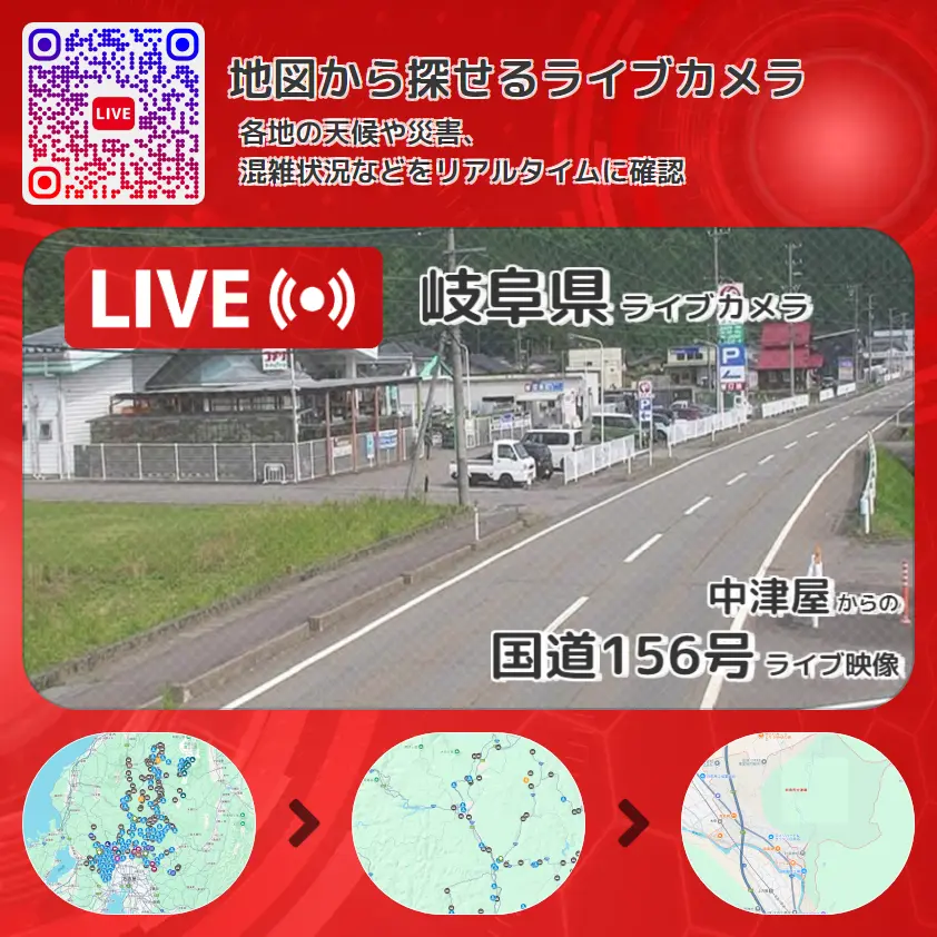 周辺の気象状況も併せてチェックすることが可能で、台風・大雨・地震などの災害による被害状況も把握することができます。