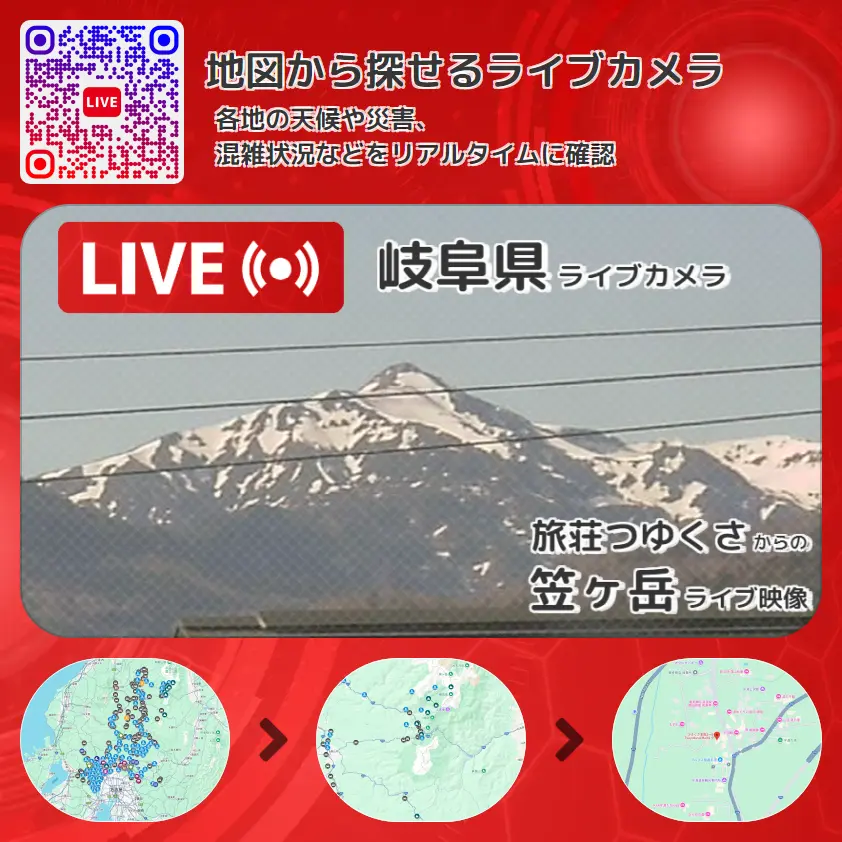 旅荘つゆくさから、笠ヶ岳が確認できるライブカメラです。