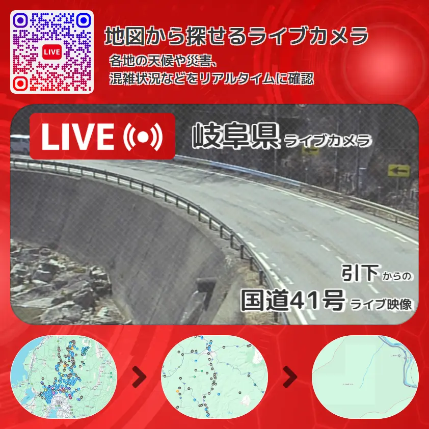 周辺の気象状況も併せてチェックすることが可能で、台風・大雨・地震などの災害による被害状況も把握することができます。