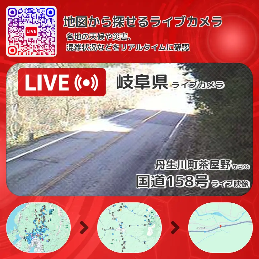 岐阜県 「国道158号」ライブ映像(丹生川町茶屋野 設置カメラ) ライブカメラ 監視カメラ