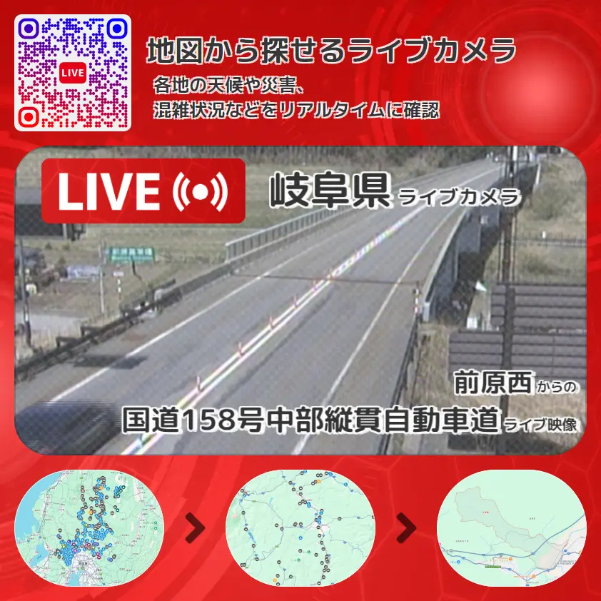 岐阜県 「国道158号中部縦貫自動車道」ライブ映像(前原西 設置カメラ) ライブカメラ 監視カメラ