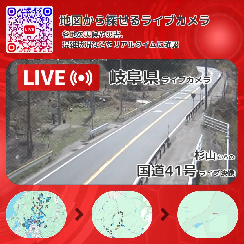 周辺の気象状況も併せてチェックすることが可能で、台風・大雨・地震などの災害による被害状況も把握することができます。