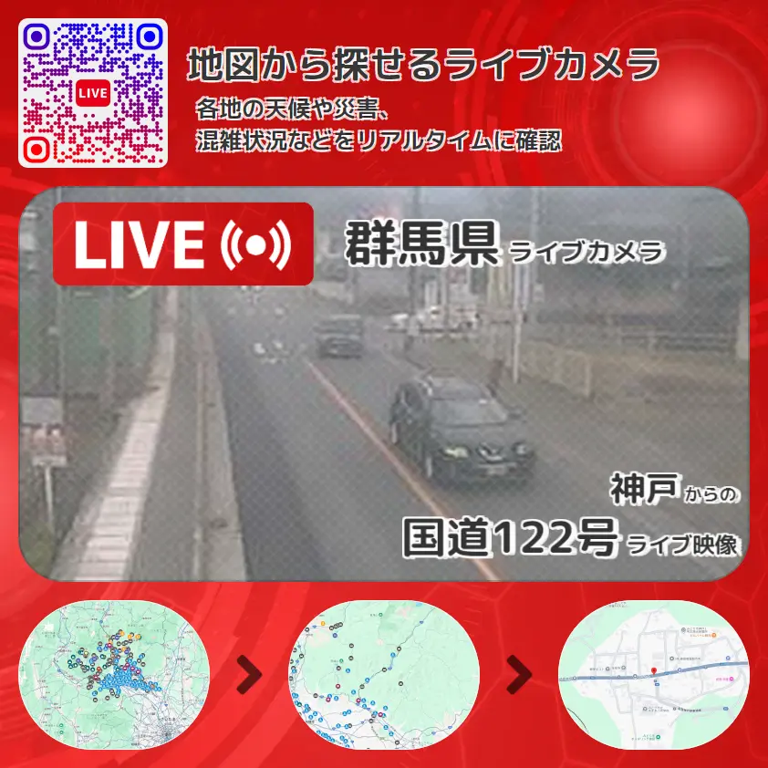 国道122号(東国文化歴史街道)の他に、群馬県道268号船笹神戸停車場線や周辺の気象状況も併せてチェックすることが可能で、台風・大雨・地震などの災害による被害状況も把握することができます。