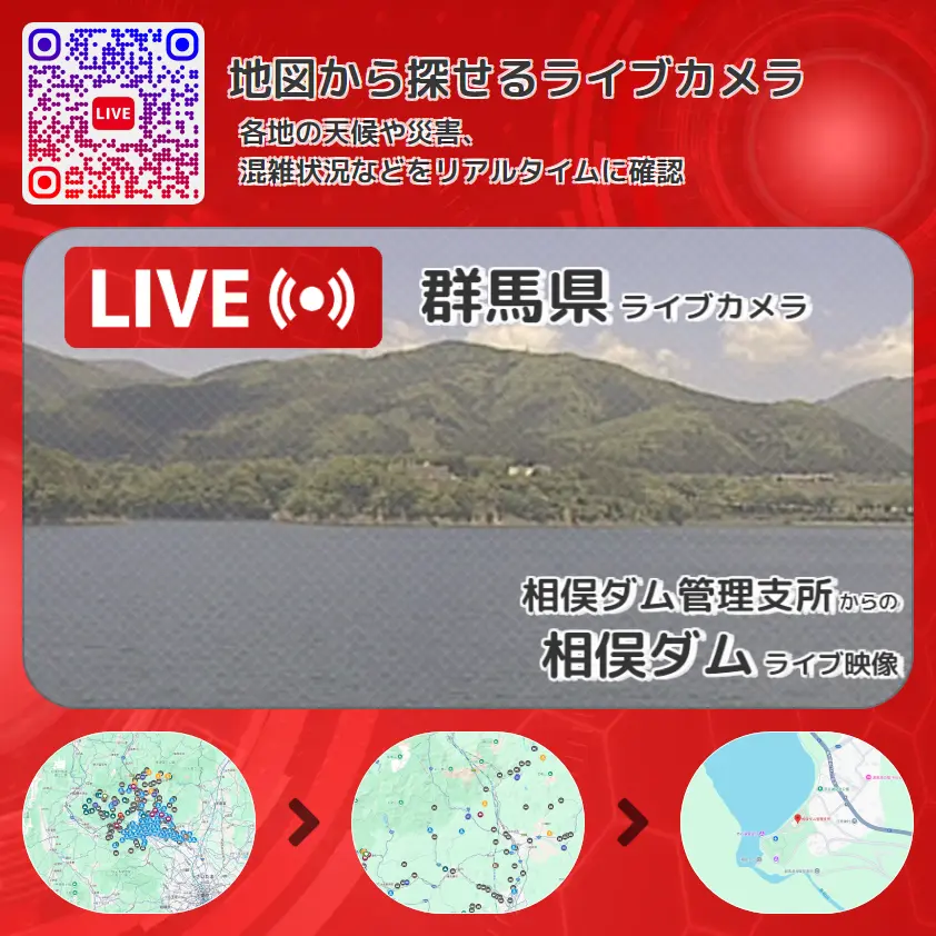 相俣ダムの他に、赤谷湖や周辺の気象状況も併せてチェックすることが可能で、台風・大雨・地震などの災害による被害状況も把握することができます。