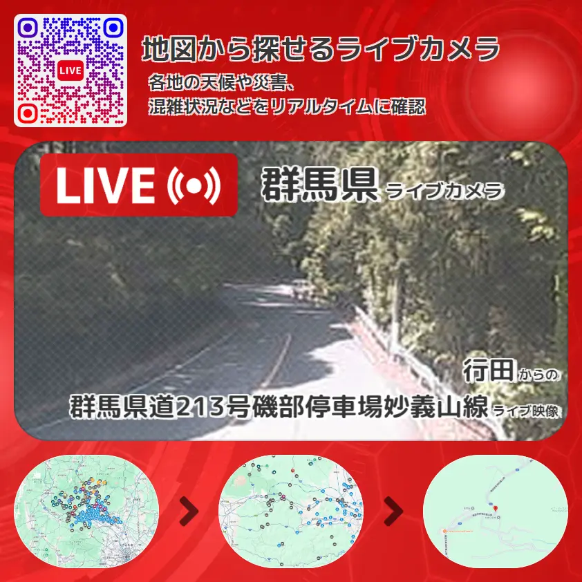 群馬県 「群馬県道213号磯部停車場妙義山線」ライブ映像(行田 設置カメラ) ライブカメラ 監視カメラ