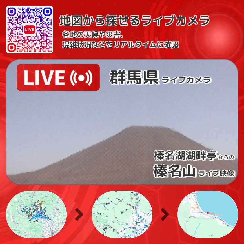 榛名山の他に、榛名湖や周辺の気象状況も併せてチェックすることが可能で、台風・大雨・地震などの災害による被害状況も把握することができます。