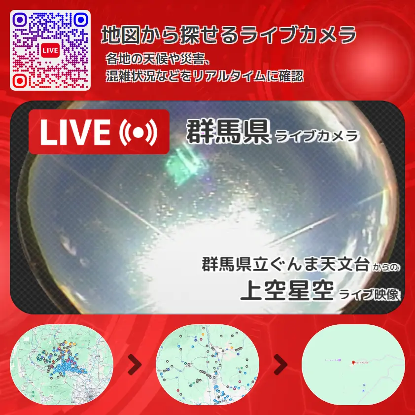 群馬県立ぐんま天文台(群馬天文台)から、上空星空が確認できるライブカメラです。