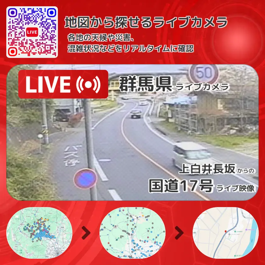 国道17号の他に、国道291号や周辺の気象状況も併せてチェックすることが可能で、台風・大雨・地震などの災害による被害状況も把握することができます。