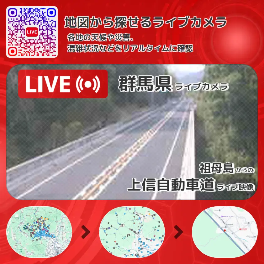 上信自動車道(上信道)の他に、国道353号(祖母島~箱島バイパス)や周辺の気象状況も併せてチェックすることが可能で、台風・大雨・地震などの災害による被害状況も把握することができます。