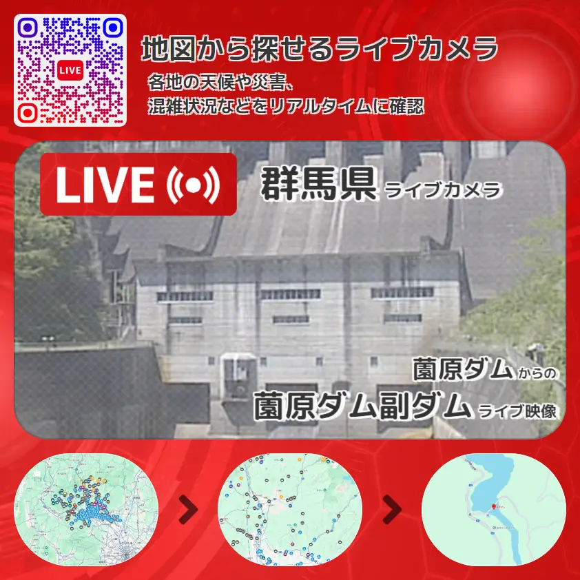 周辺の気象状況も併せてチェックすることが可能で、台風・大雨・地震などの災害による被害状況も把握することができます。