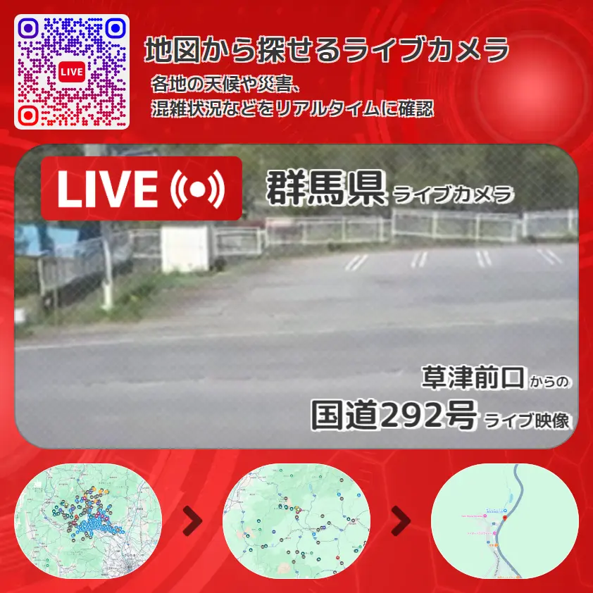 国道292号(浅間・白根・志賀さわやか街道)の他に、群馬県道59号草津嬬恋線や周辺の気象状況も併せてチェックすることが可能で、台風・大雨・地震などの災害による被害状況も把握することができます。