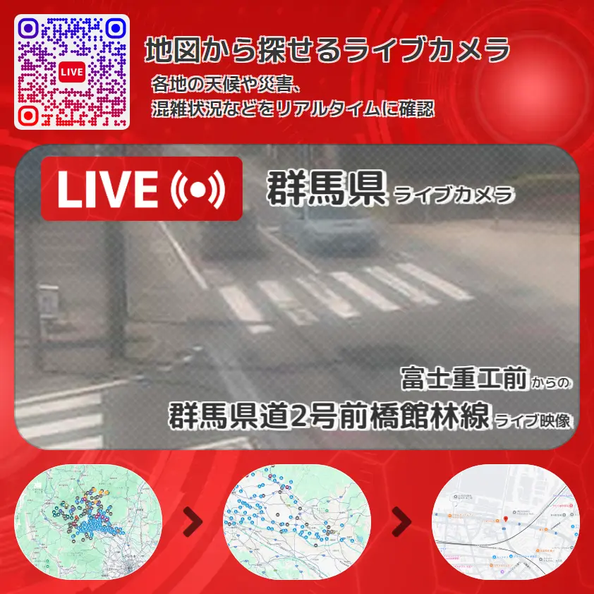 富士重工前から、群馬県道2号前橋館林線(東国文化歴史街道・例幣使街道)が確認できるライブカメラです。