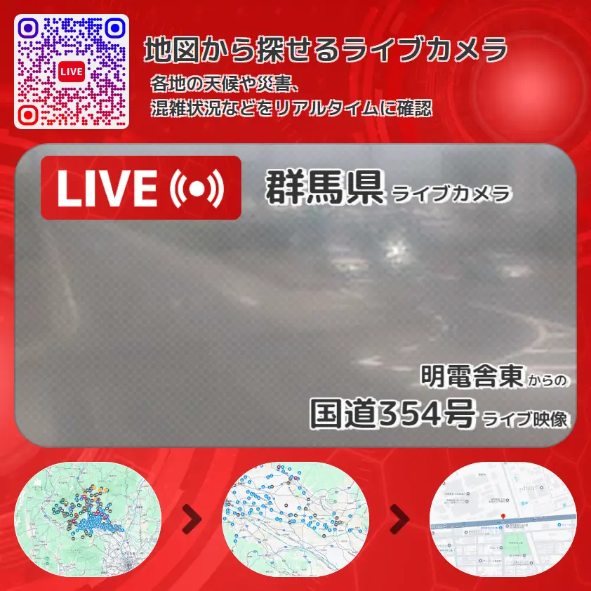 周辺の気象状況も併せてチェックすることが可能で、台風・大雨・地震などの災害による被害状況も把握することができます。