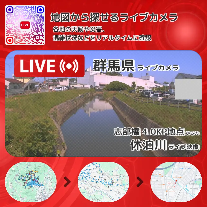 休泊川の他に、大泉スバル運動公園方面や周辺の気象状況も併せてチェックすることが可能で、台風・大雨・地震などの災害による被害状況も把握することができます。