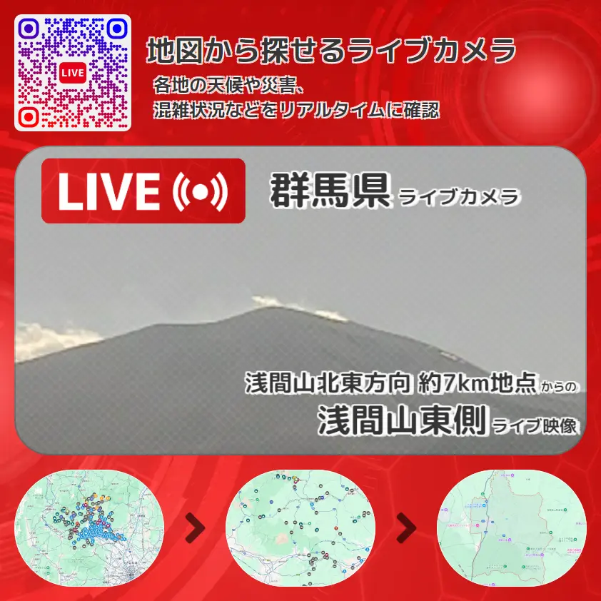群馬県 「浅間山東側」ライブ映像(浅間山北東方向 約7km地点 設置カメラ) ライブカメラ 監視カメラ