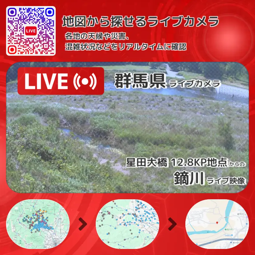 星田大橋 12.8KP地点から、鏑川が確認できるライブカメラです。