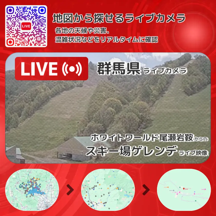 ホワイトワールド尾瀬岩鞍から、スキー場ゲレンデ(国体女子沢コース・リーゼンコース・エキスパートコース)が確認できるライブカメラです。