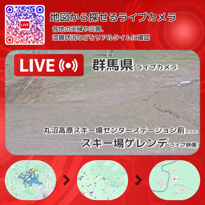 スキー場ゲレンデ(標高1400m FROZEN WAVE PARK)の他に、サマーゲレンデや周辺の気象状況も併せてチェックすることが可能で、台風・大雨・地震などの災害による被害状況も把握することができます。