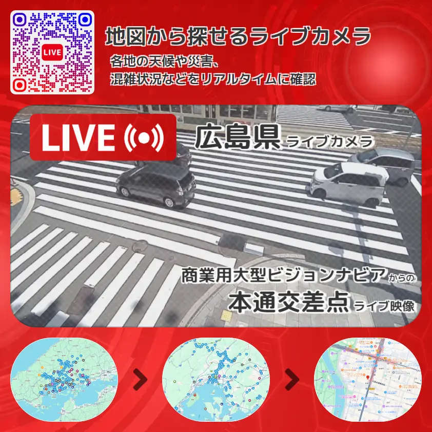 本通交差点の他に、広島本通商店街や周辺の気象状況も併せてチェックすることが可能で、台風・大雨・地震などの災害による被害状況も把握することができます。