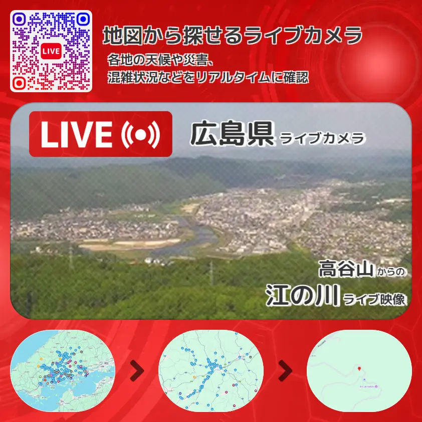 周辺の気象状況も併せてチェックすることが可能で、台風・大雨・地震などの災害による被害状況も把握することができます。