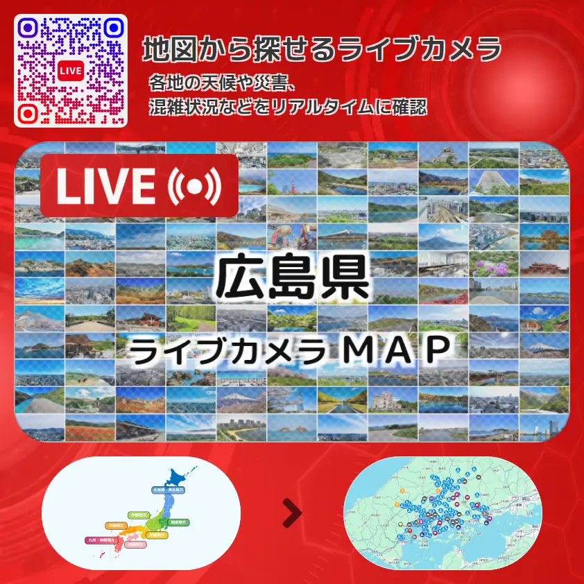 広島県のライブカメラMAP 広島県 X Facebook はてブ LINE コピー 2025.11.082025.11.09 リンク GoogleMapの地点一覧は測地系の影響により、地図上のマークが示す地点はおおよその場所になります。正確な位置は各地点の詳細ページをご確認ください。リンク