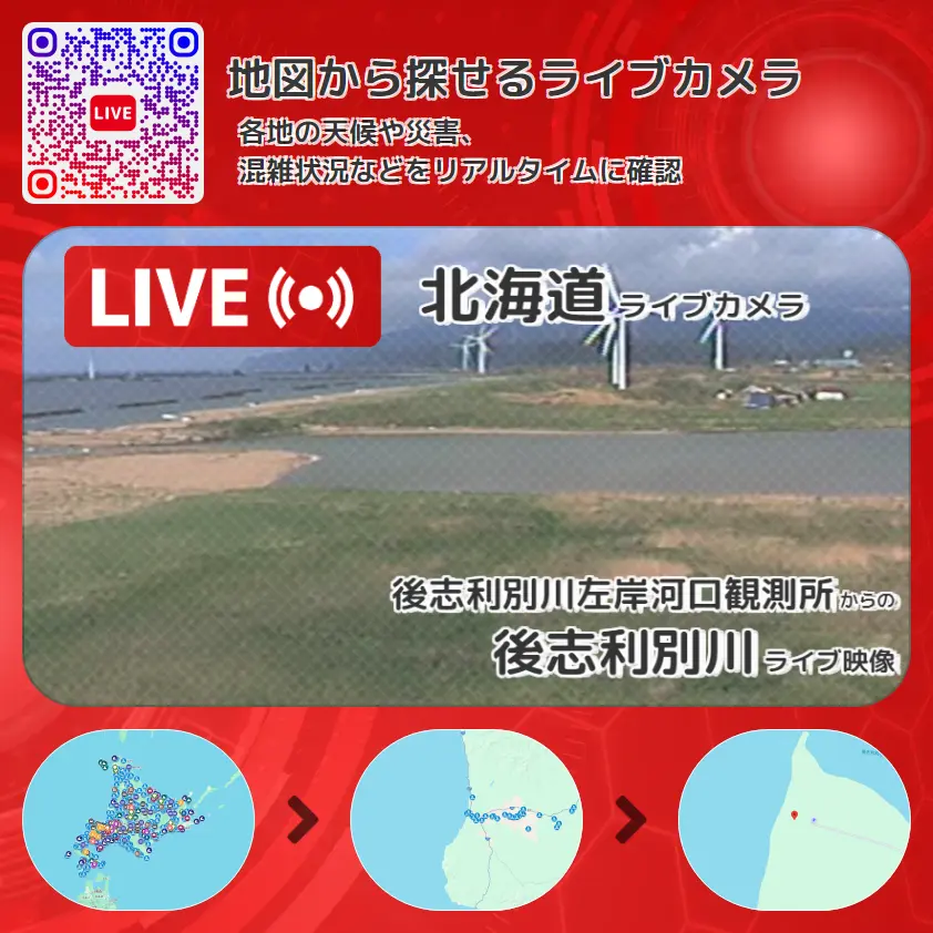 後志利別川の他に、後志利別川河口や周辺の気象状況も併せてチェックすることが可能で、台風・大雨・地震などの災害による被害状況も把握することができます。