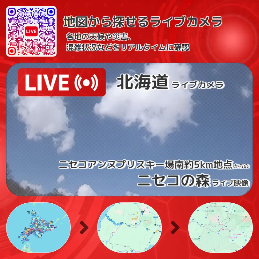 ニセコの森の他に、ニセコアンヌプリや周辺の気象状況も併せてチェックすることが可能で、台風・大雨・地震などの災害による被害状況も把握することができます。