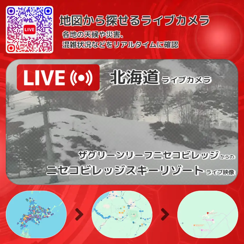 ニセコビレッジスキーリゾート(ザ・グリーンリーフ隣接コース)の他に、ニセコゴンドラや周辺の気象状況も併せてチェックすることが可能で、台風・大雨・地震などの災害による被害状況も把握することができます。