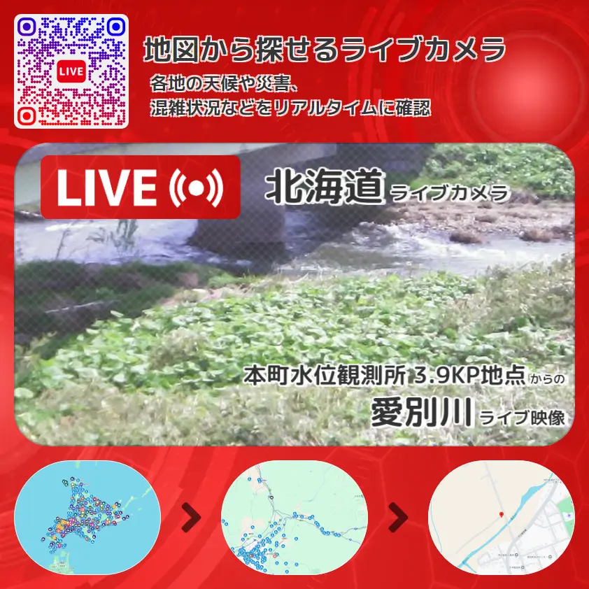北海道 「愛別川」ライブ映像(本町水位観測所 3.9KP地点 設置カメラ) ライブカメラ 監視カメラ