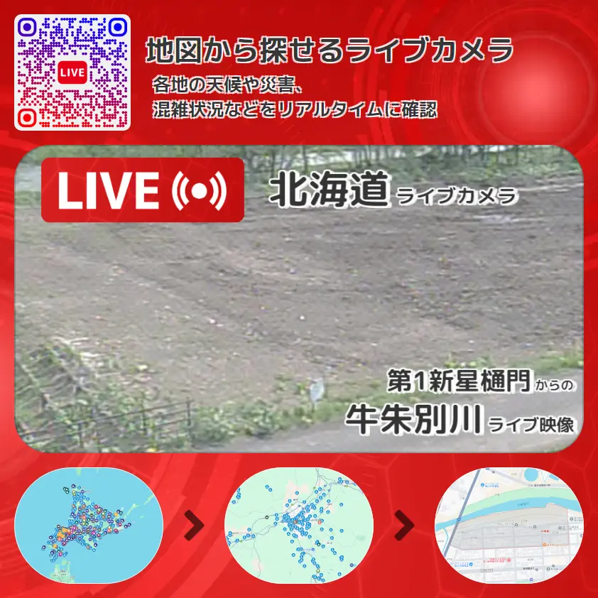 北海道 「牛朱別川」ライブ映像(第1新星樋門 設置カメラ) ライブカメラ 監視カメラ