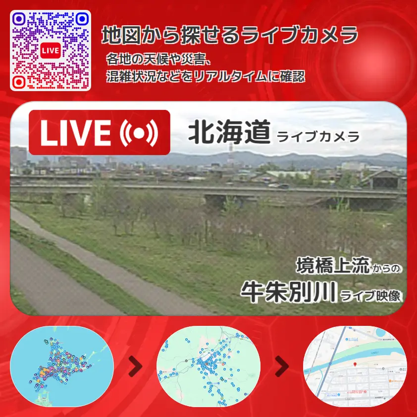 境橋上流から、牛朱別川が確認できるライブカメラです。