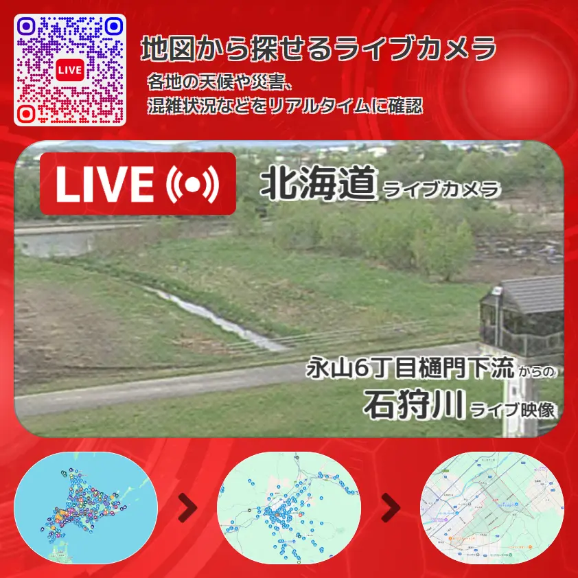 周辺の気象状況も併せてチェックすることが可能で、台風・大雨・地震などの災害による被害状況も把握することができます。