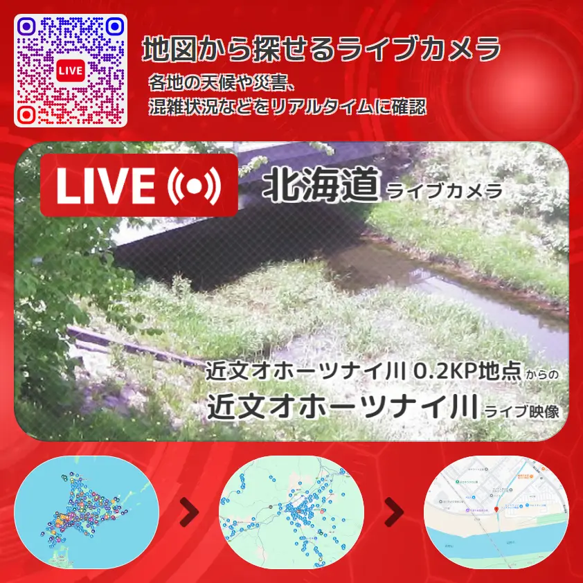 近文オホーツナイ川 0.2KP地点から、近文オホーツナイ川が確認できるライブカメラです。