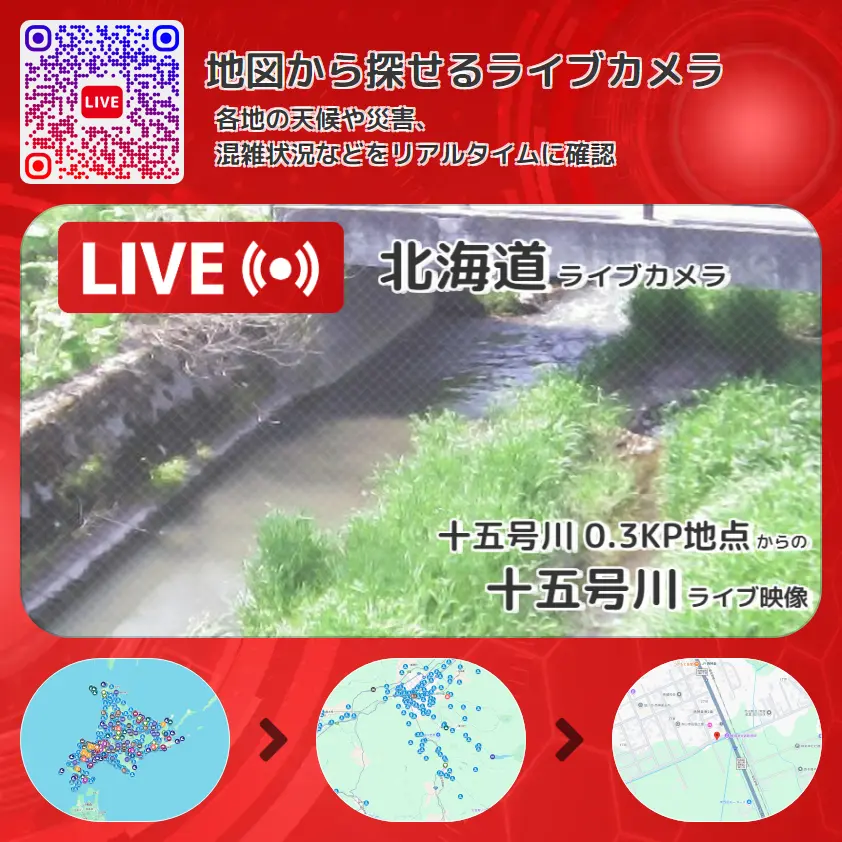 十五号川 0.3KP地点から、十五号川(15号川)が確認できるライブカメラです。
