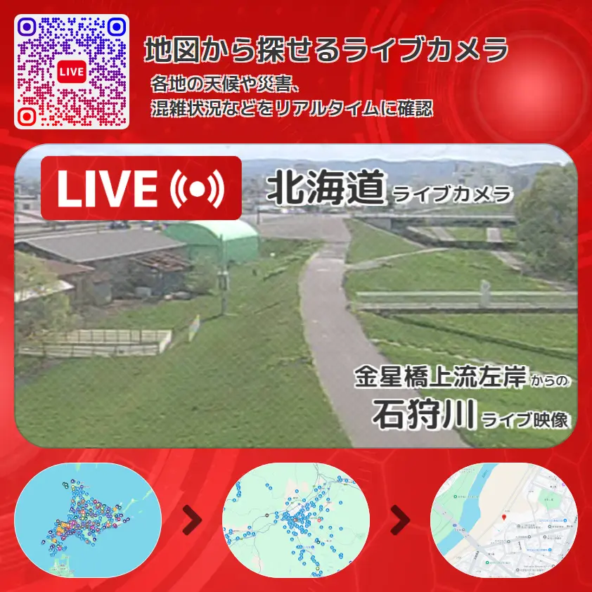 金星橋上流左岸から、石狩川が確認できるライブカメラです。