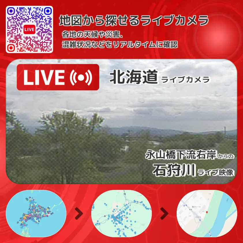 永山橋下流右岸から、石狩川が確認できるライブカメラです。