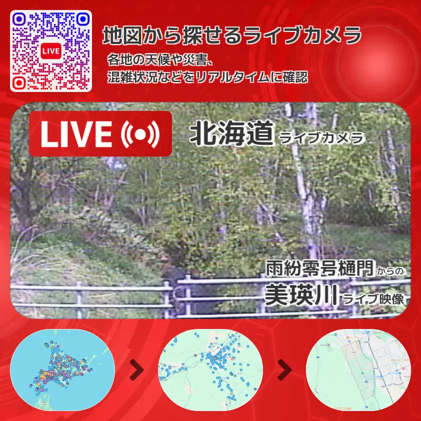 周辺の気象状況も併せてチェックすることが可能で、台風・大雨・地震などの災害による被害状況も把握することができます。