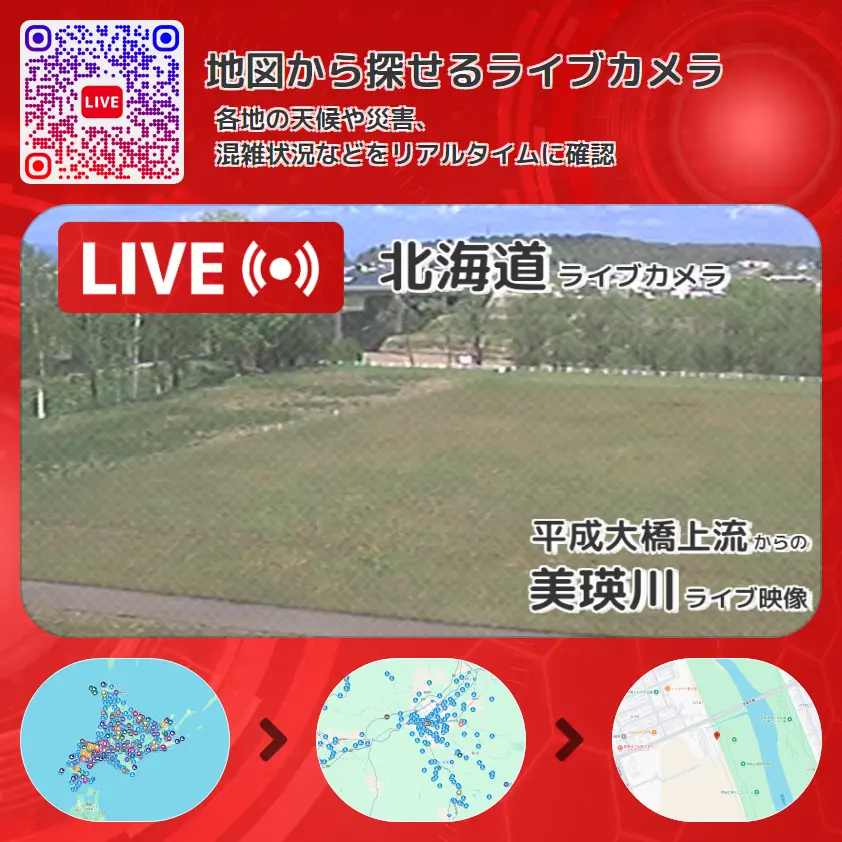 美瑛川の他に、平成大橋や周辺の気象状況も併せてチェックすることが可能で、台風・大雨・地震などの災害による被害状況も把握することができます。