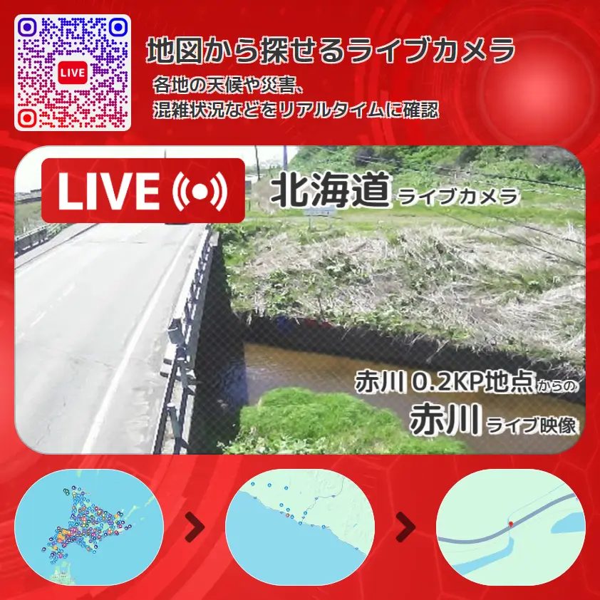 赤川の他に、赤川橋や周辺の気象状況も併せてチェックすることが可能で、台風・大雨・地震などの災害による被害状況も把握することができます。