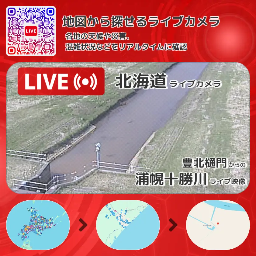 浦幌十勝川の他に、四号沢川(4号沢川)や周辺の気象状況も併せてチェックすることが可能で、台風・大雨・地震などの災害による被害状況も把握することができます。
