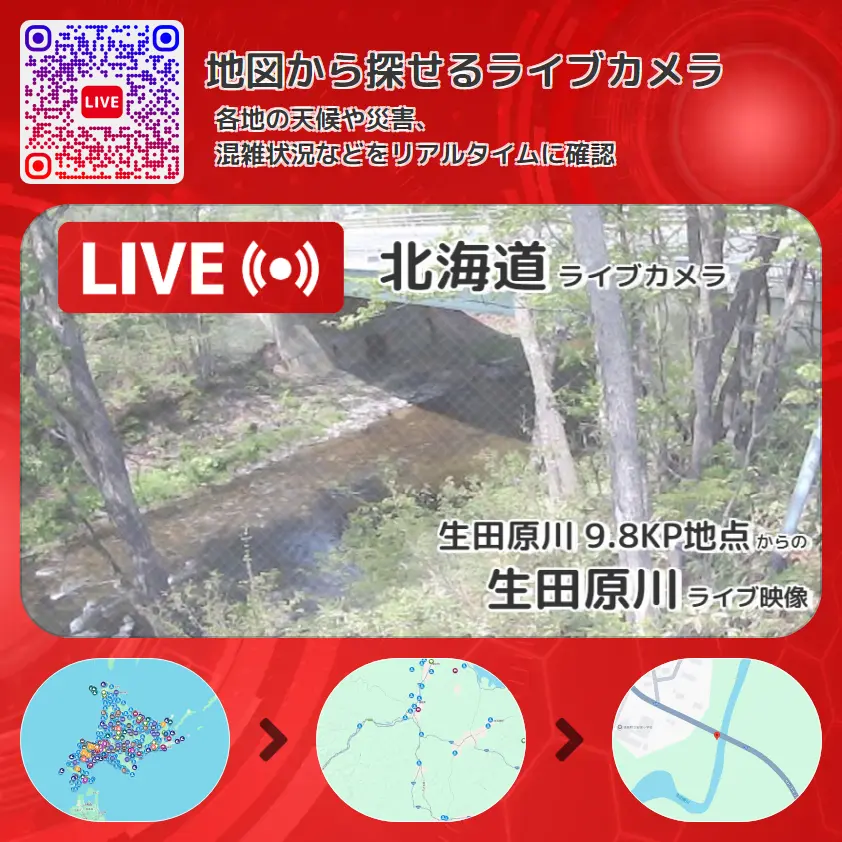 生田原川 9.8KP地点から、生田原川が確認できるライブカメラです。