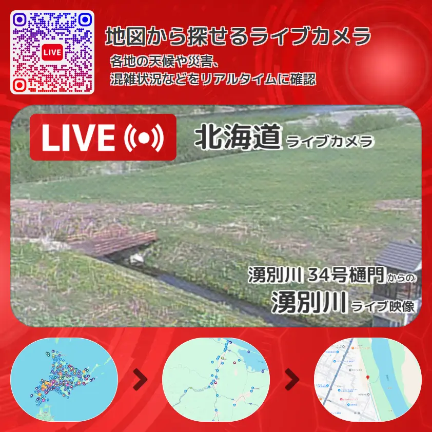 周辺の気象状況も併せてチェックすることが可能で、台風・大雨・地震などの災害による被害状況も把握することができます。