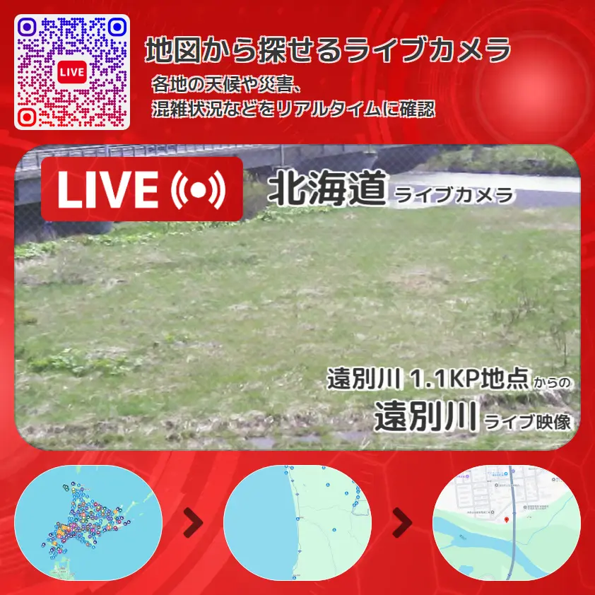 遠別川の他に、遠別橋や周辺の気象状況も併せてチェックすることが可能で、台風・大雨・地震などの災害による被害状況も把握することができます。