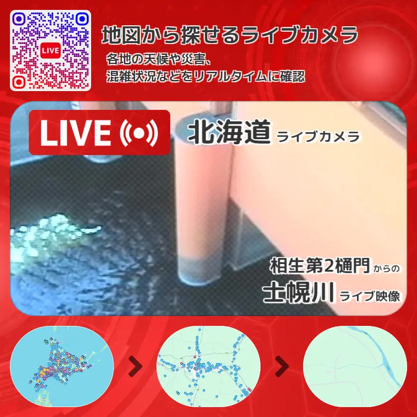 士幌川の他に、相生沢川や周辺の気象状況も併せてチェックすることが可能で、台風・大雨・地震などの災害による被害状況も把握することができます。