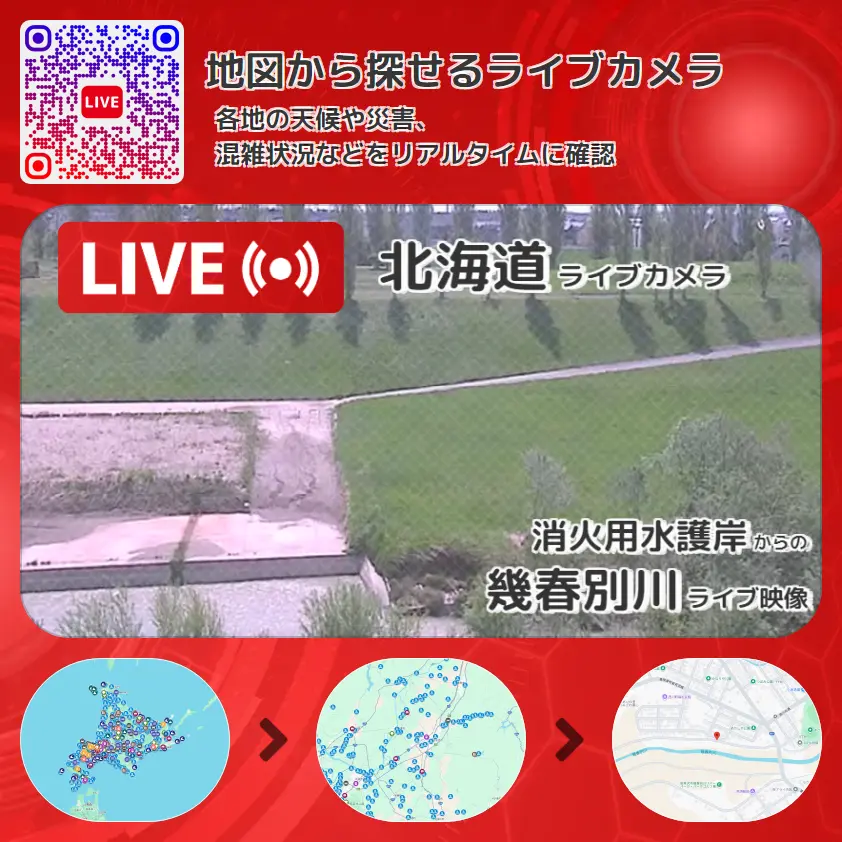 幾春別川の他に、岩見沢市幾春別川リバーパークパークゴルフ場や周辺の気象状況も併せてチェックすることが可能で、台風・大雨・地震などの災害による被害状況も把握することができます。