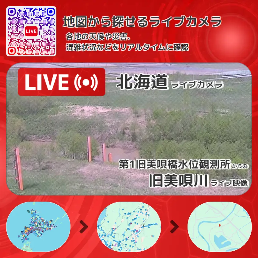 周辺の気象状況も併せてチェックすることが可能で、台風・大雨・地震などの災害による被害状況も把握することができます。