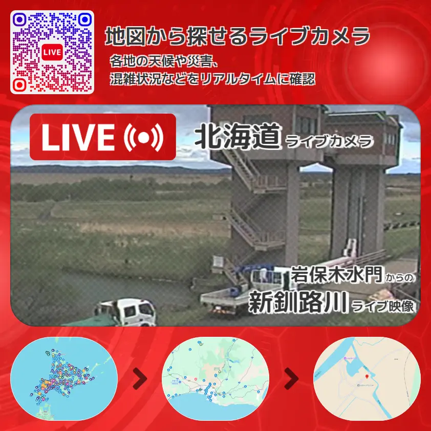 新釧路川の他に、釧路川や周辺の気象状況も併せてチェックすることが可能で、台風・大雨・地震などの災害による被害状況も把握することができます。
