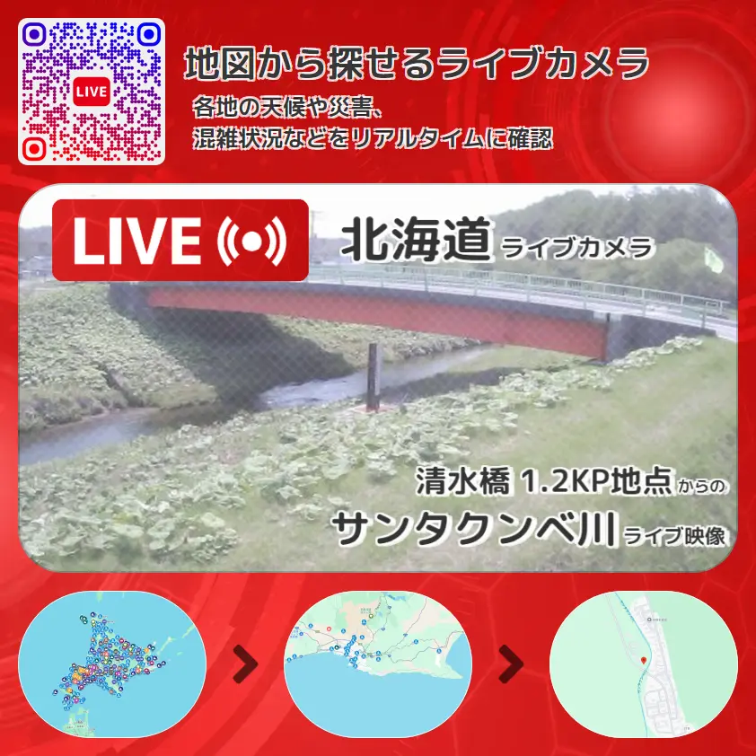 清水橋 1.2KP地点から、サンタクンベ川が確認できるライブカメラです。